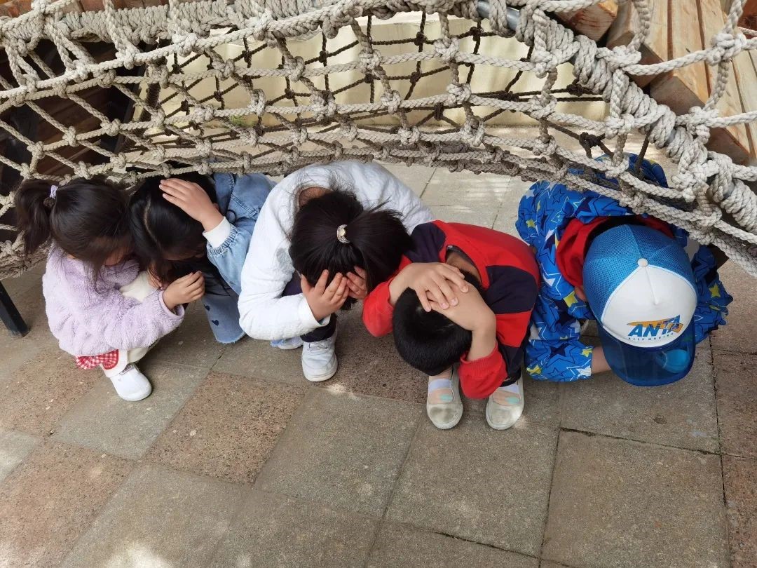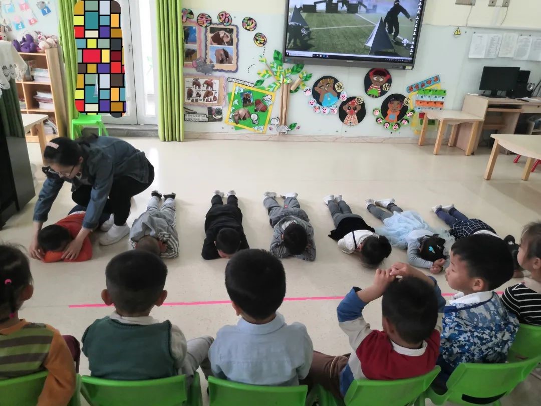 演习前,各班教师根据幼儿年龄特点,开展了《防空知识我知道》的主题活动,在活动中,孩子们了解了“空袭警报”长短有着不同的作用,并通过现场试听感知音效的不同。知道在防空警报响起时,要迅速跟随老师做好双手抱头的自我防护动作,按照规定路线,快速、有序地从教室向安全的地带撤离。